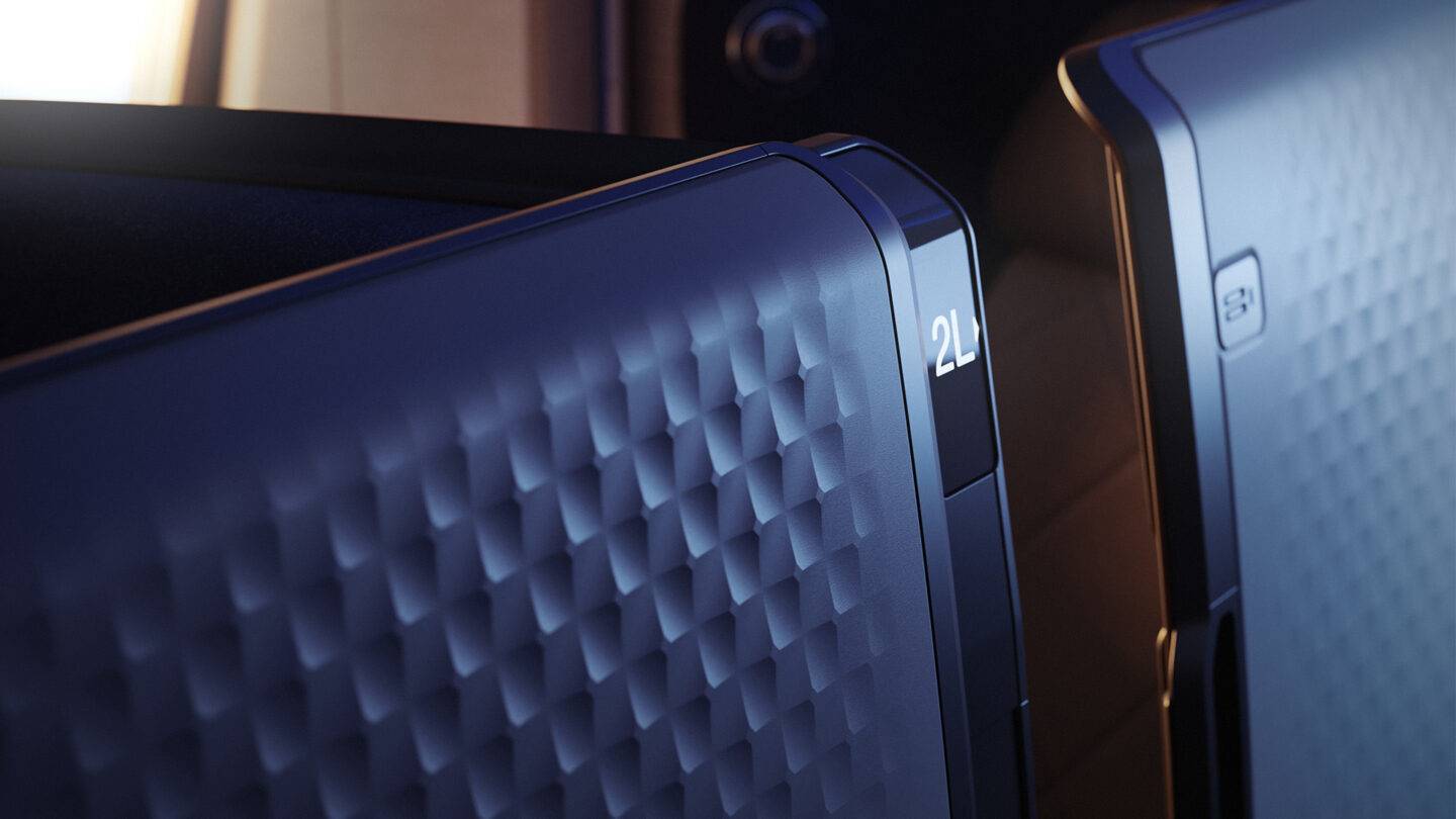 The living space of the seat was opened up and refined: a cleverly floating lamp reveals an Ultrasuede-lined amenity cubby, while the same material wraps the passenger to create an atmosphere that is at once luxurious and cosseting. Adjacent furniture was optimised to include generous cocktail surfaces in real stone, well-positioned power outlets, inductive charging, and a bespoke digital seat control screen, familiar Polaris comforts, thoughtfully elevated.