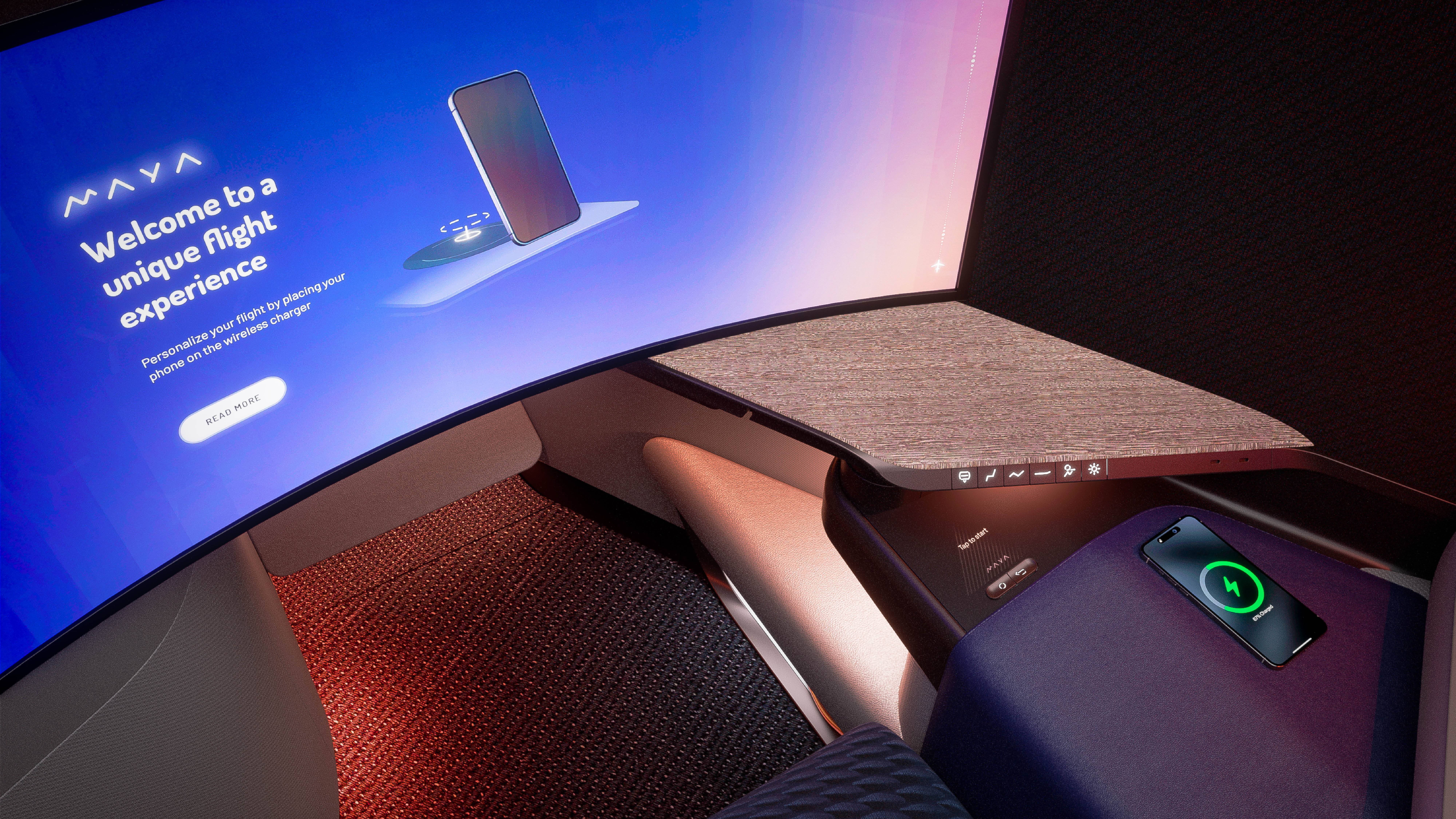 MAYA enables a personalised service and journey through an interactive journey planner which provides choice of when to eat and a personalised rest schedule, all supported by ambience and complementary lighting echoing circadian rhythms. Among others, this is particularly beneficial to those needing a sense of control and predictability.