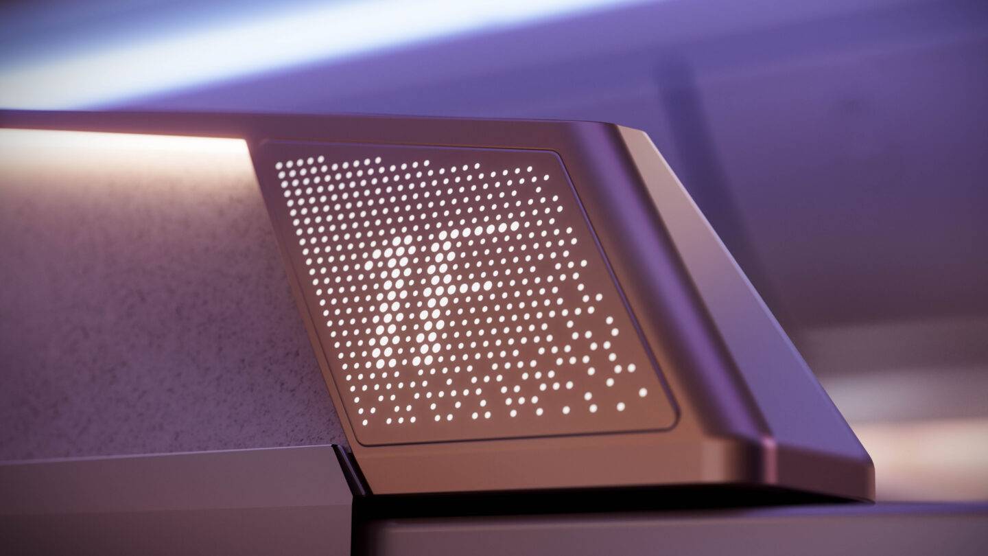 Shy Tech affords the opportunity for spaces to become personalised to each individual’s needs and habits, transforming environments into “sanctuaries” for passengers, rather than impersonal spaces. One of the techniques Shy Tech uses to achieve this is through timely reveals with the aid of AI integration to reveal certain information or features in the cabin. Displays can be customised to only reveal relevant information based on the situation, which can prevent sensory overload. Functionally, smart surfaces can choose when to display information or announcements, and when to reveal certain controls to enable a seamless, calm experience for the passenger.